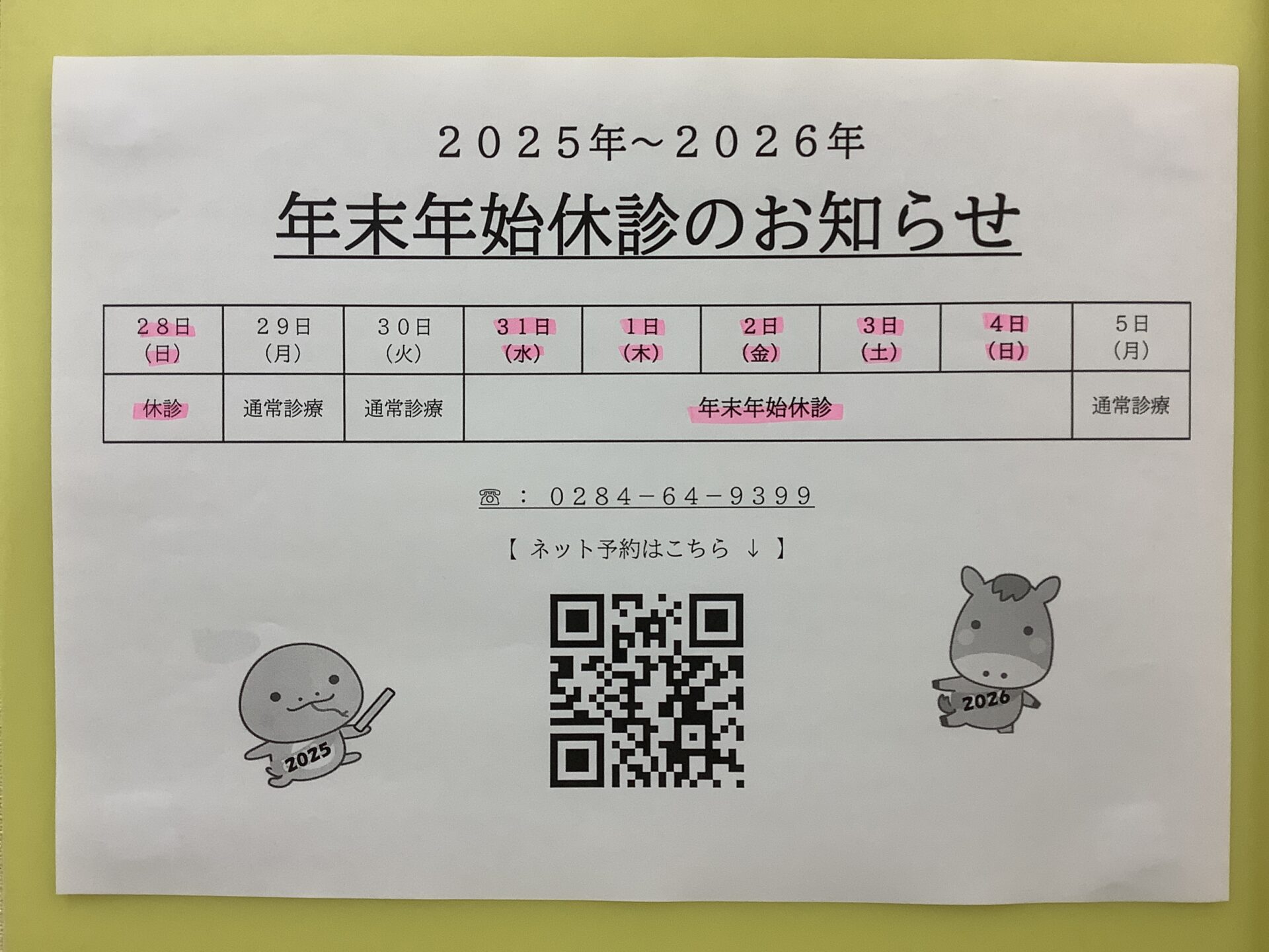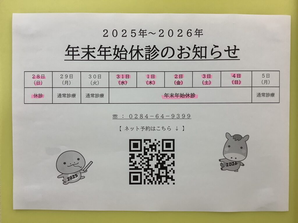 2025年年末年始の診療日程について